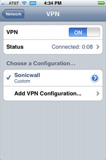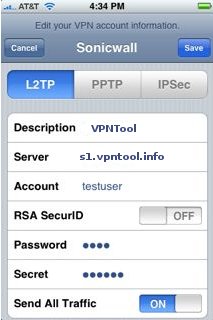 Services: VPN using iPhone (using l2tp option on the VPN-IP Service)